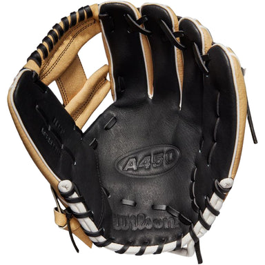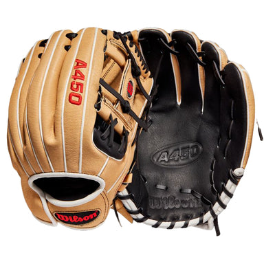 View full detailsThe Wilson A450 11.5" glove is designed for youth players learning multiple positions. Its H-Web helps secure the ball, while the all-leather const...
