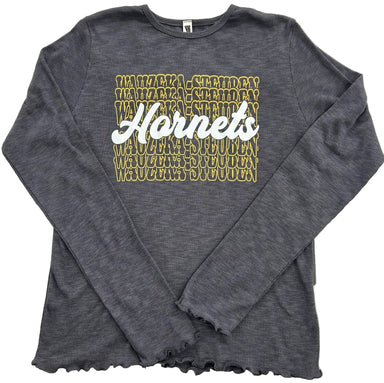 Show your Hornet pride with the Pennant Wauzeka-Steuben Lettuce Trim Long Sleeve. Crafted from soft, ribbed fabric with a subtle waffle texture, th...