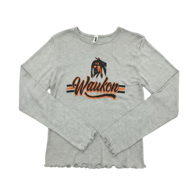 Show your school spirit with the Pennant Waukon Indians Long Sleeve. Made from soft ribbed material, this stylish top features delicate lettuce hem...